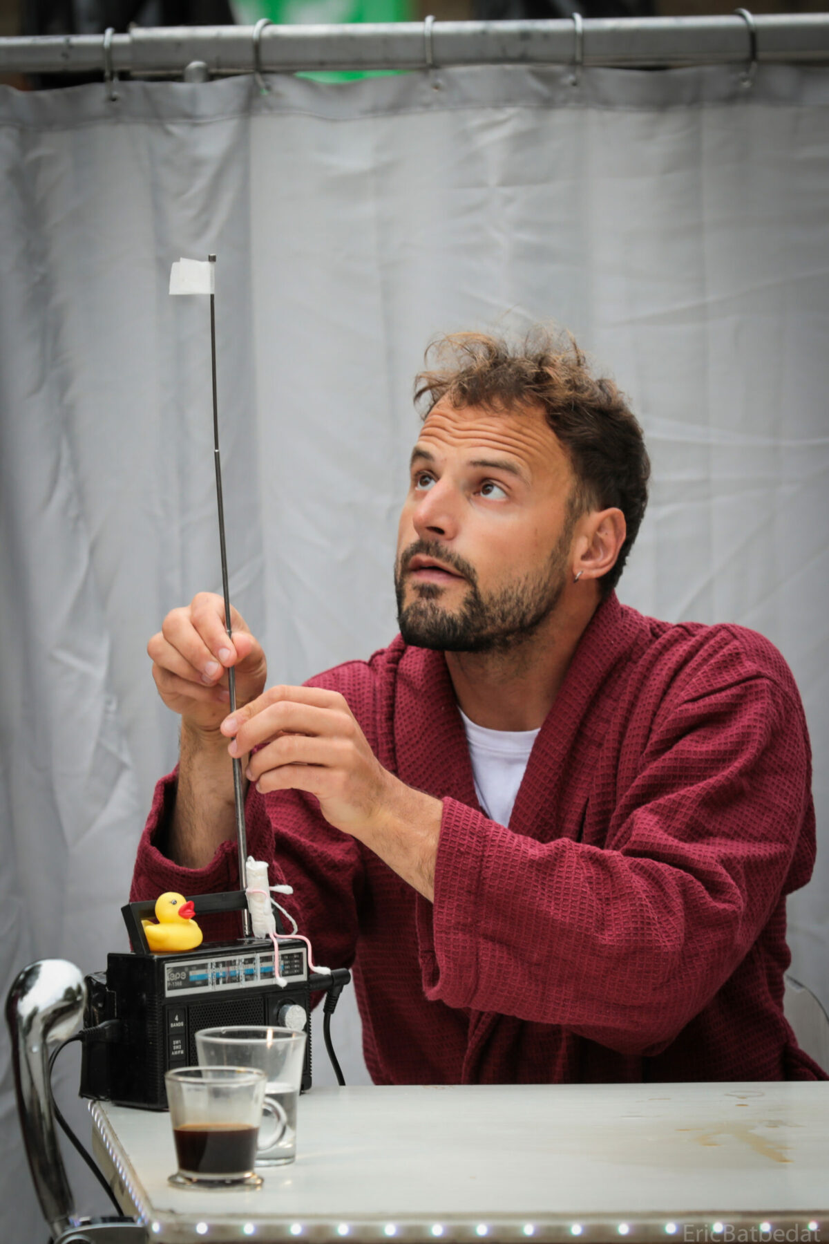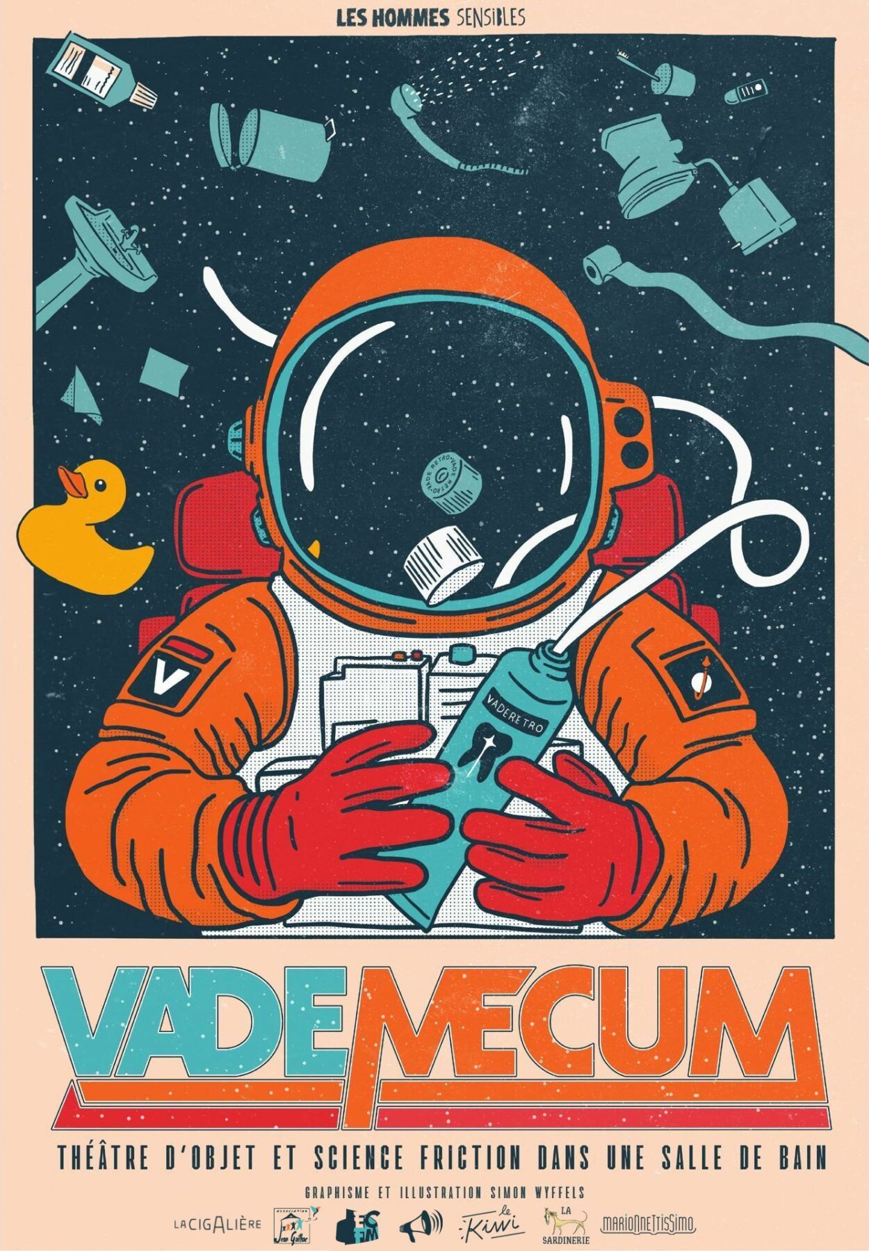 À travers bruitages, détournement d’objets du quotidien et clins d’œil à la science-fiction, il explore son imaginaire comme un astronaute dérivant dans le vide spatial. Vademecum, c’est un numéro de cirque d’appartement spectaculaire, une explosion créative où le jeu d’acteur flirte avec le jeu d’enfant. Une échappée cosmico-comique qui prouve qu’avec si peu, on peut s’amuser infiniment.
