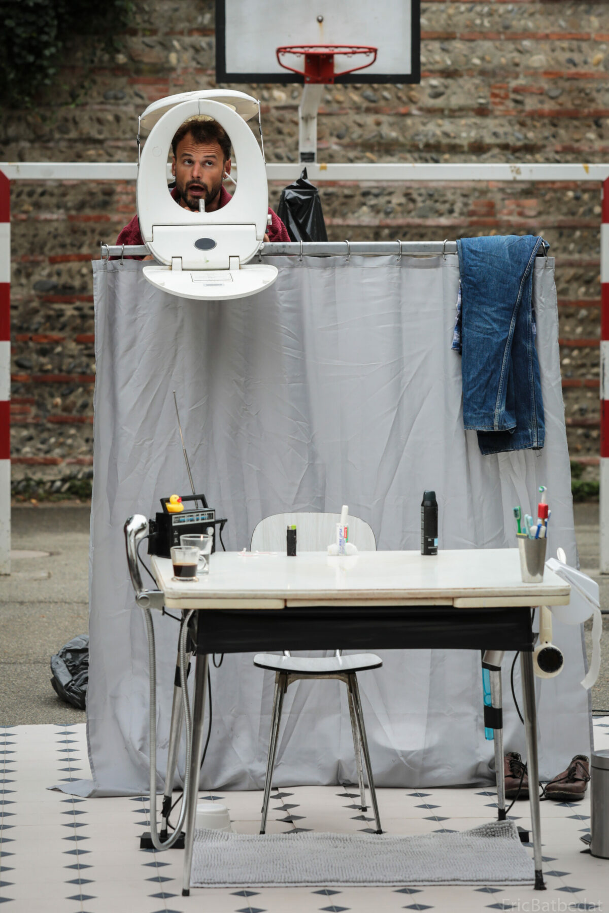 Solo poétique et décalé où la banalité d’une salle de bain devient le point de départ d’une odyssée intergalactique. Seul dans cet espace intime, un homme transforme sa routine matinale en voyage cosmique, reliant l’infiniment petit au vertige de l’infiniment grand.